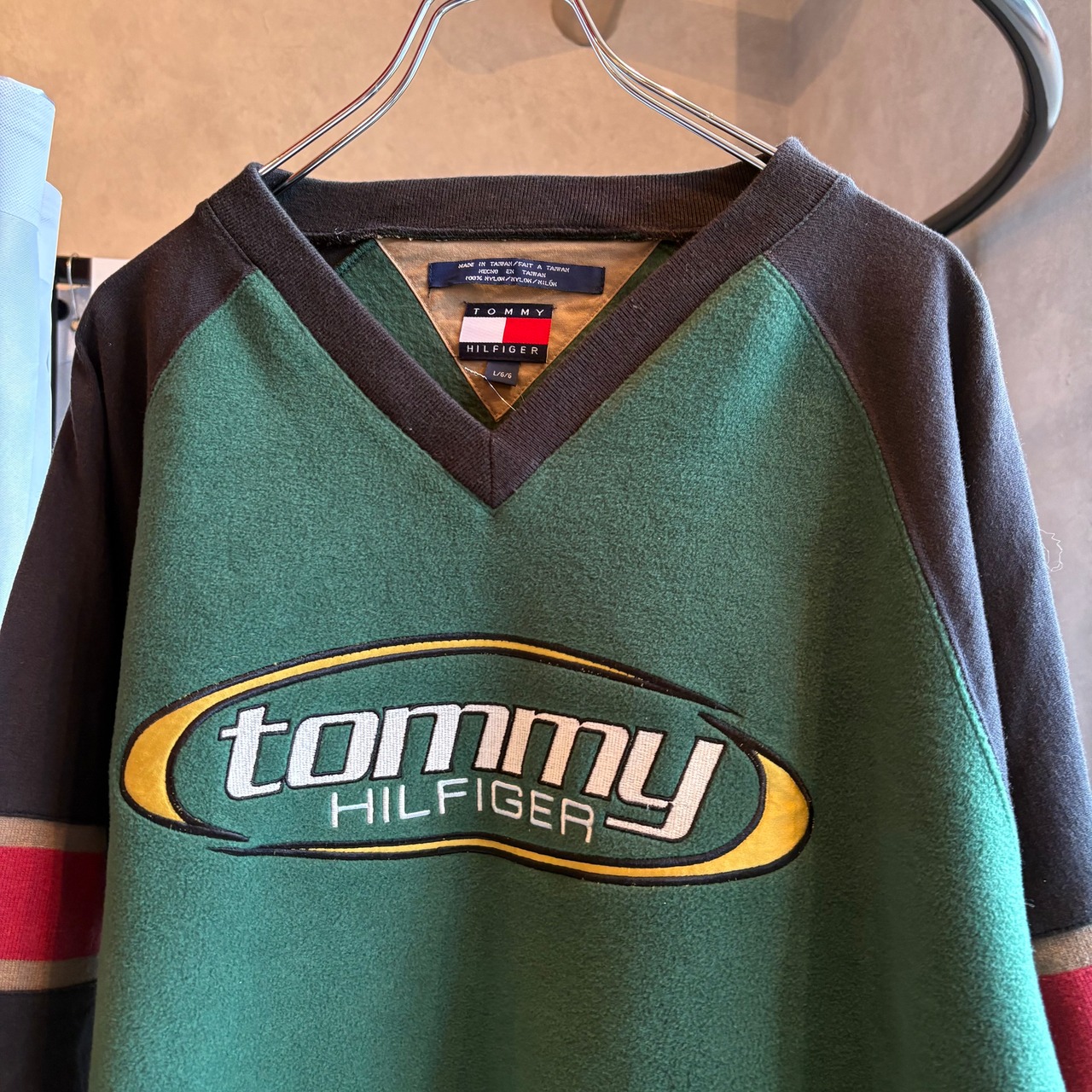 〈REMARKS〉TOMMY HILFIGERの中でもストリート感強めなデザインの一枚。薄手の生地感でありつつ、フリース切替になった変わり種のアイテムかと。袖口のイニシャルロゴの刺繍もかわいくて良いです☺︎