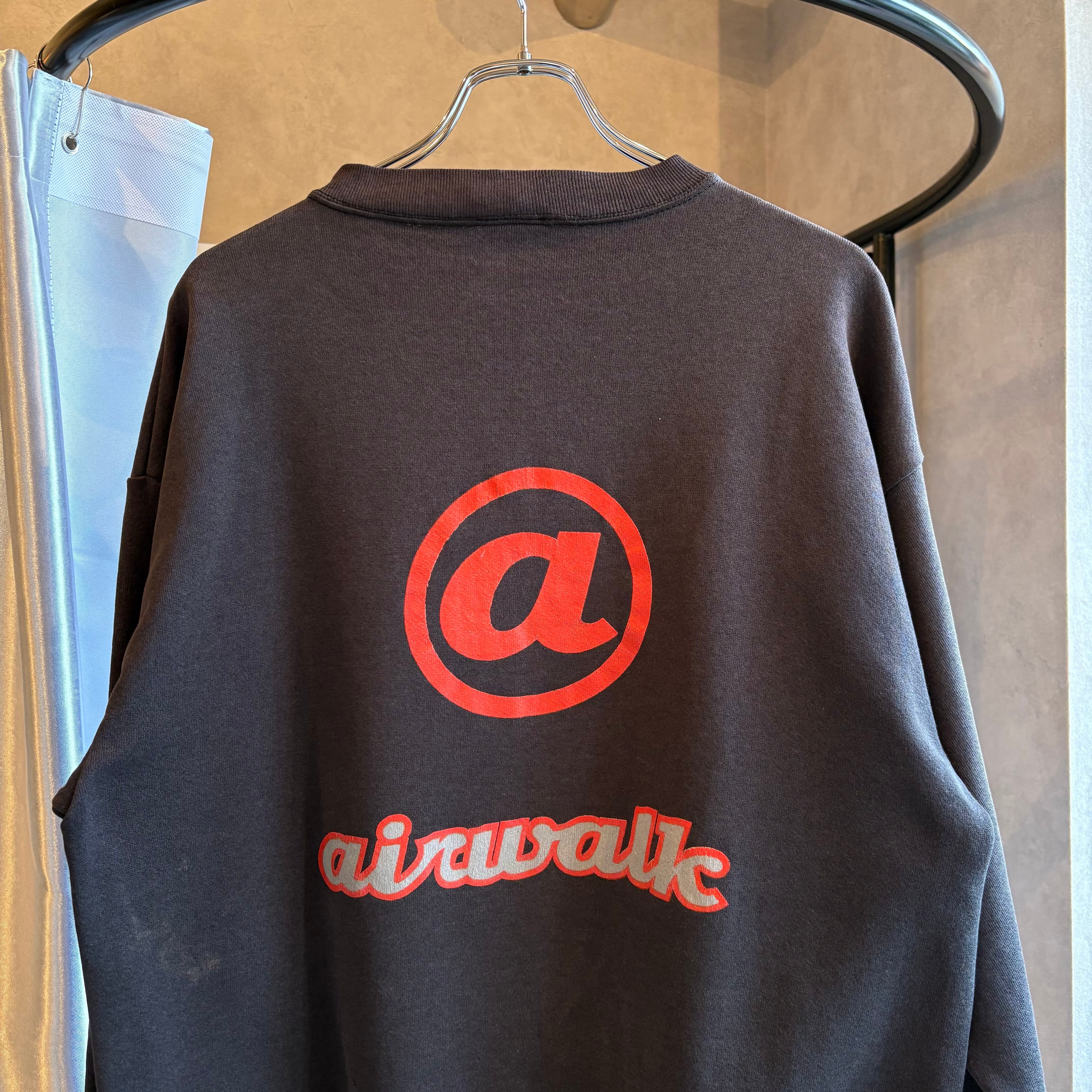 スケーターブランド『Airwalk』のプリントスウェット。両面に入った『@』のようなロゴプリントからはどこかインターネットの香りがします(個人的感想)。