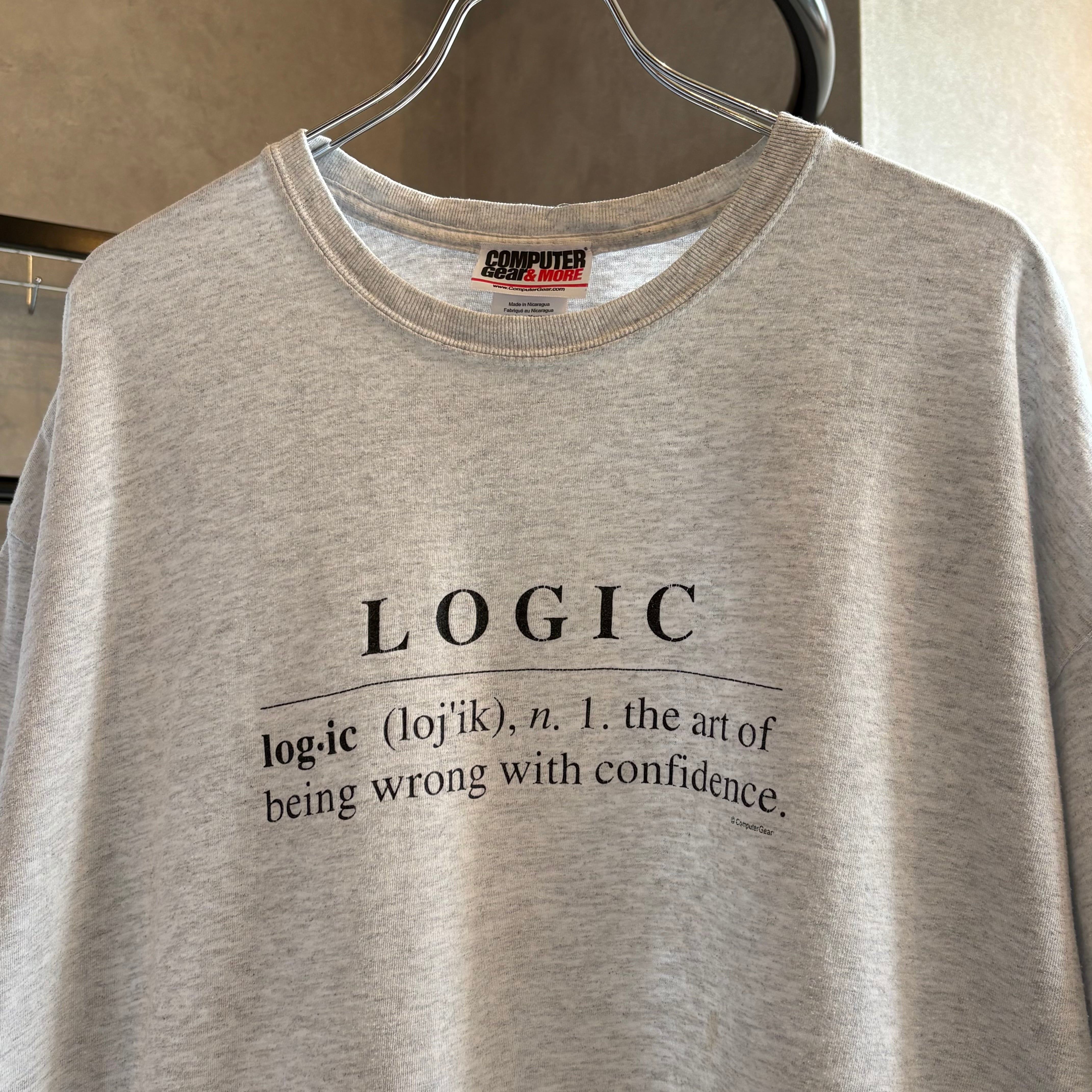 『Logic』という単語へのユーモラスな解説がフロントに入ったどこか知的でウィットに富んだ雰囲気のジョークTシャツ。