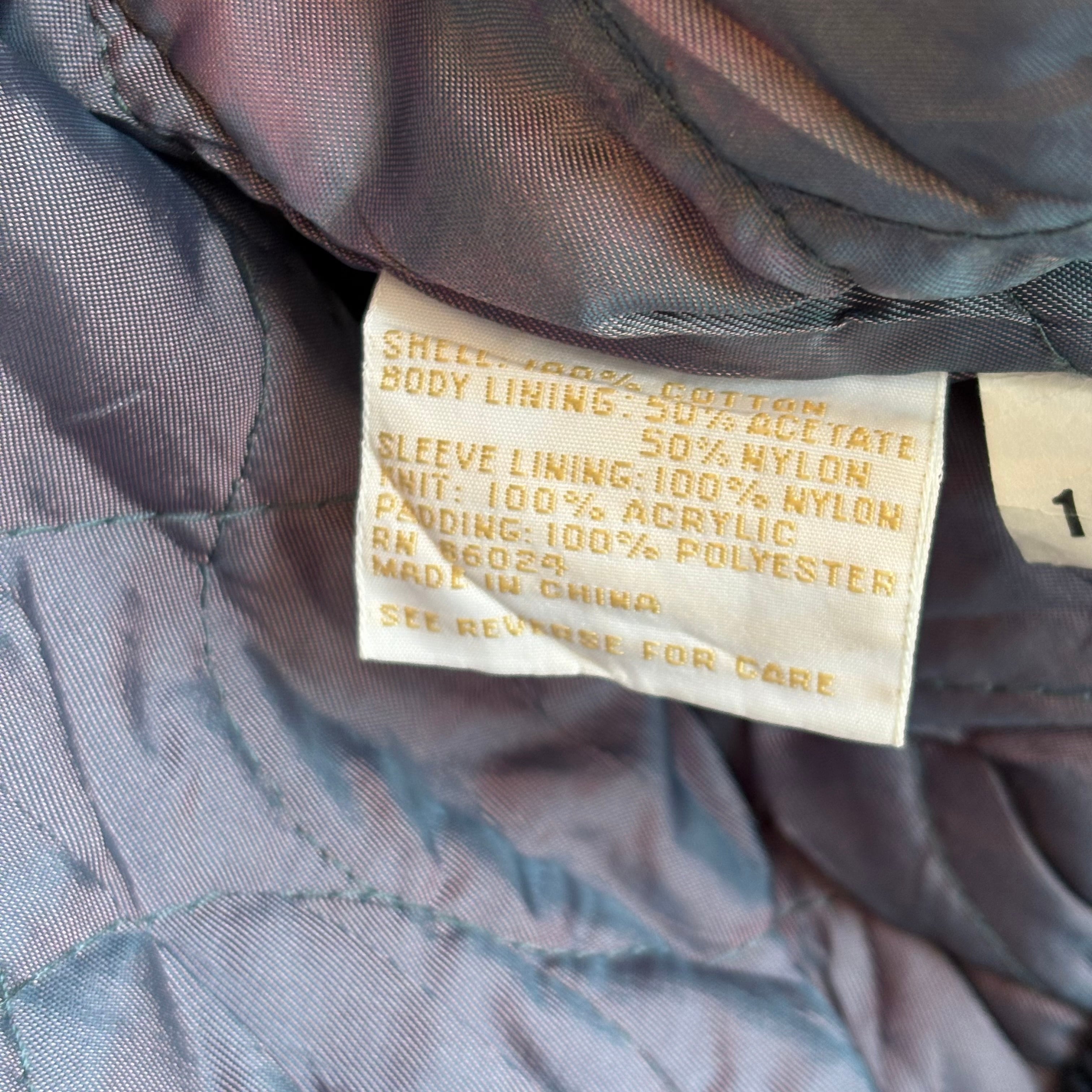 〈MATERIAL〉表地/コットン100%,本体裏地/アセテート50% ナイロン50%,袖裏地/ナイロン100%,リブ部分/アクリル100%, 中綿/ポリエステル100%