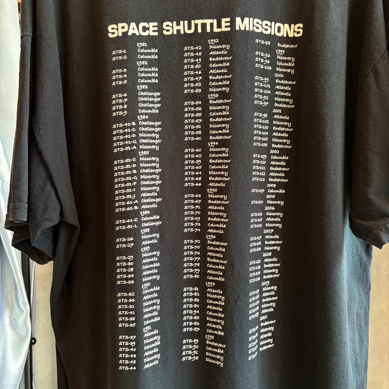 フロントの今まさに地上を離れ宇宙へと向かっていくスペースシャトルのグラフィックも背面に羅列された歴代のミッションも、どちらも非常に目を引きます。