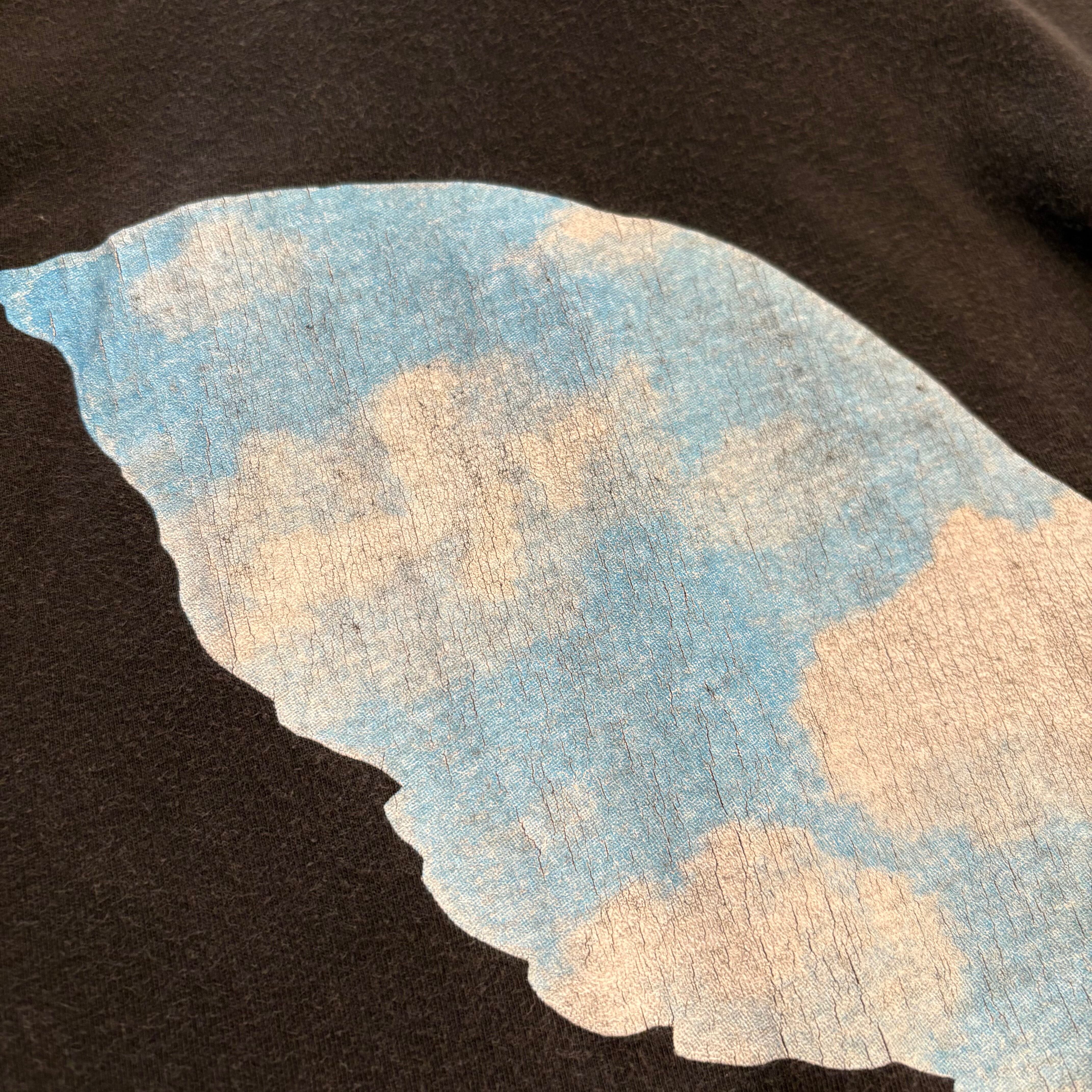 空を飛ぶ鳥のシルエットの中に収まった青空という爽やかなモチーフはTシャツ映えしますよね。