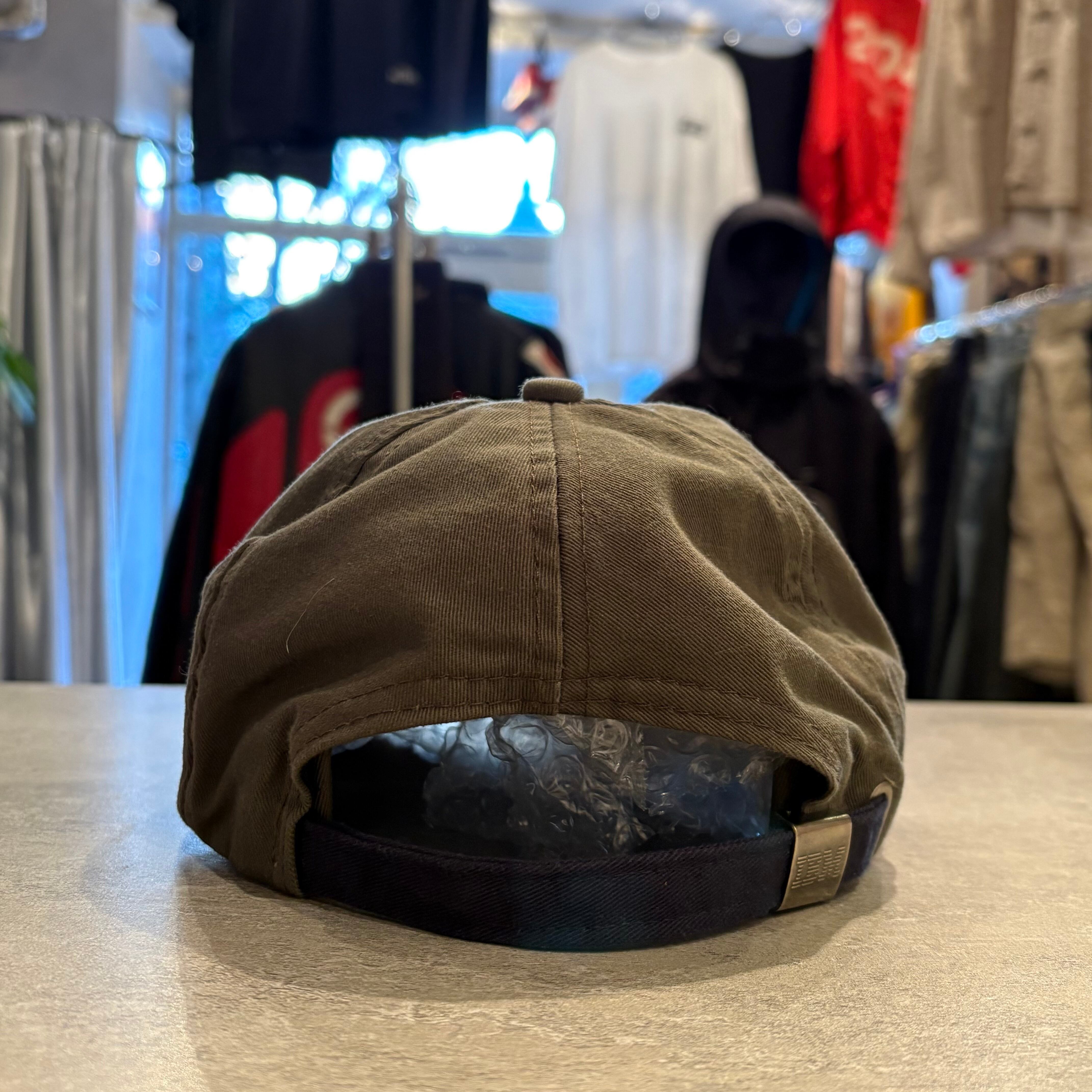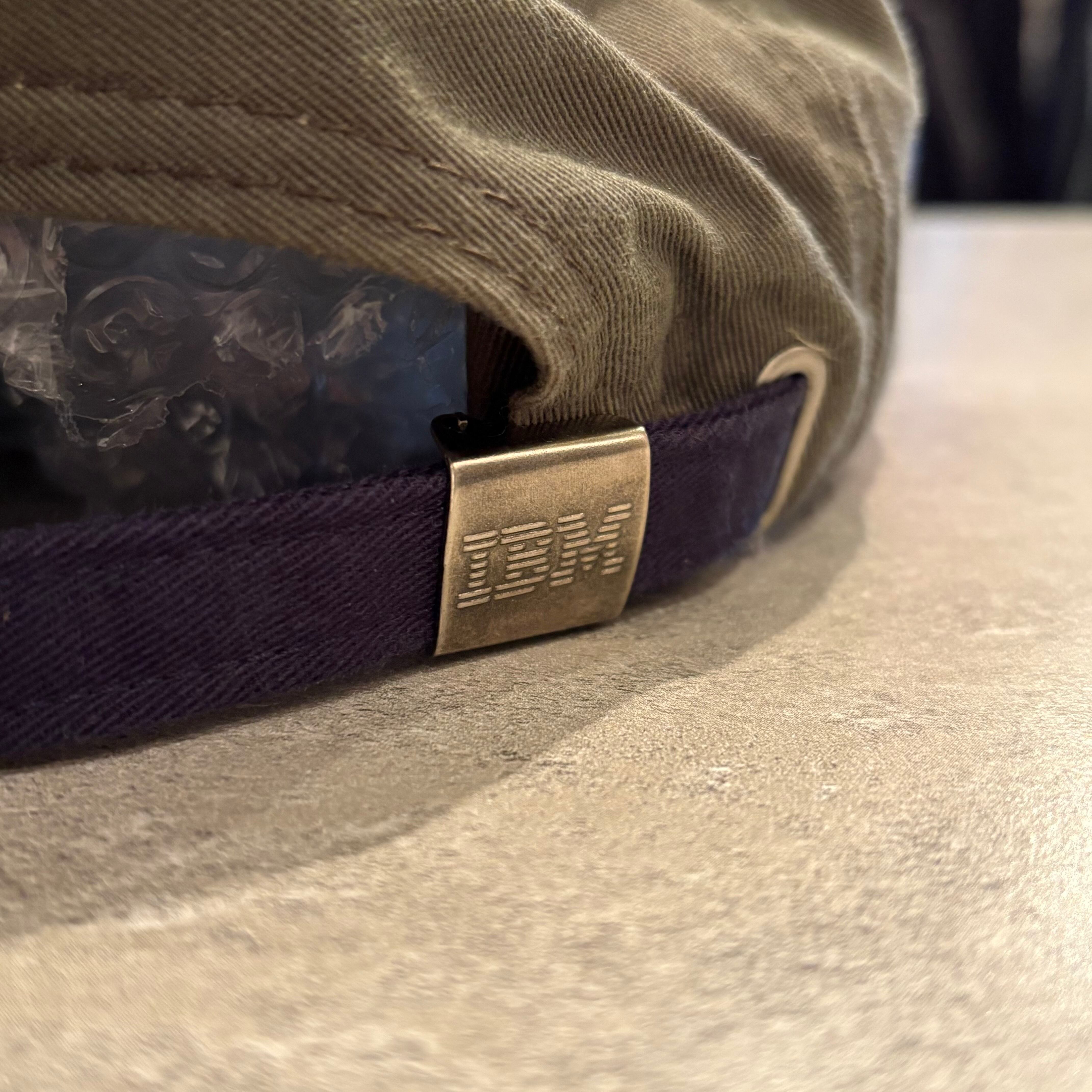 フロントにアイコニックなIBMのロゴが刺繍された玄人好みなカラーリングのキャップです。