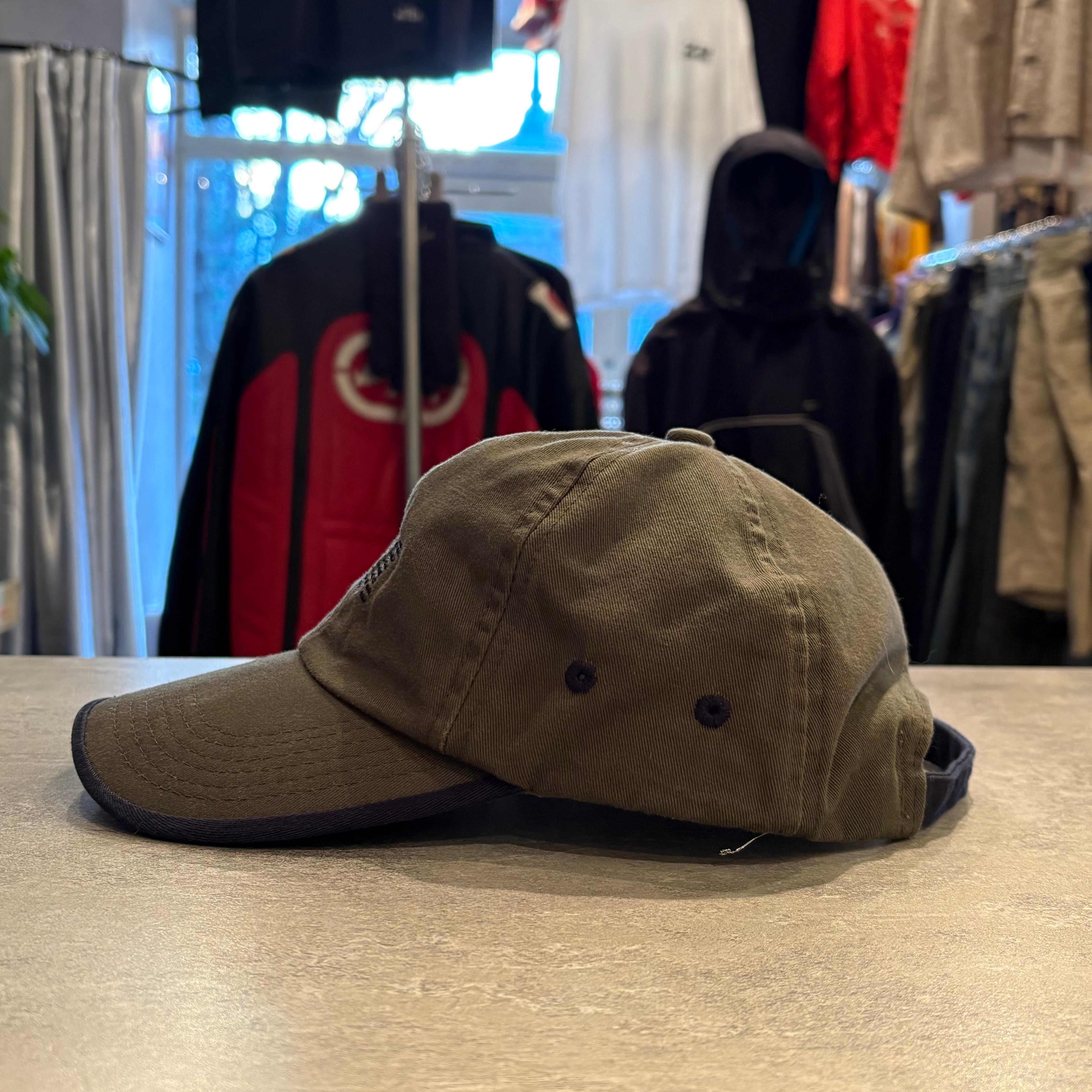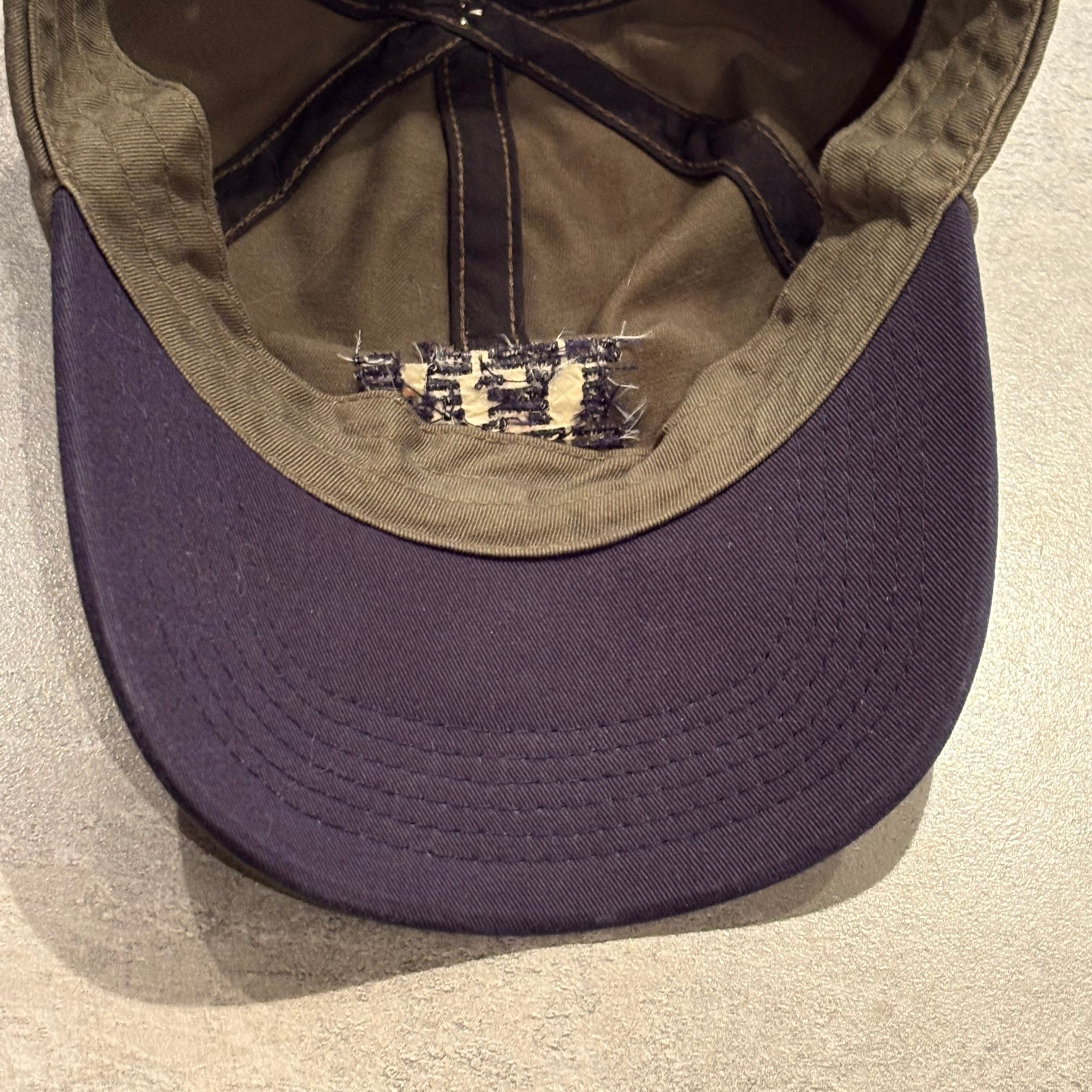 ミリタリーに通じるカーキ系のボディに対し、つば裏やライニング、ベルト部分などに部分的に使われたネイビーが全体の印象を引き締めてくれています。