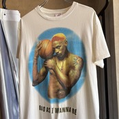 米国のプロバスケットボールリーグ『NBA』の歴史上でも屈指のリバウンダー、デニス・ロッドマンの姿が正面にプリントされた存在感のあるグラフィックプリントTシャツです。